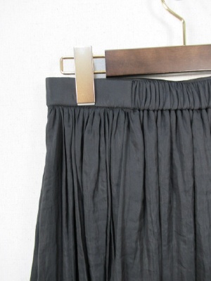 光沢感のあるサテン生地、ギャザースカート、横ファスナー、裏地あり、後ろウェスト少しゴム入り