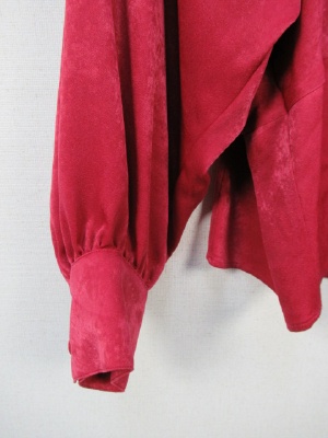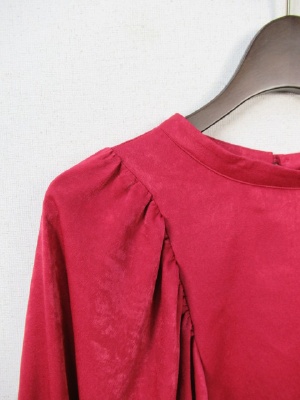 袖山から測ったので肩幅が狭くなっていますが、袖山から裾までの切り替えになります、カフスボタンは共布のクルミボタンです