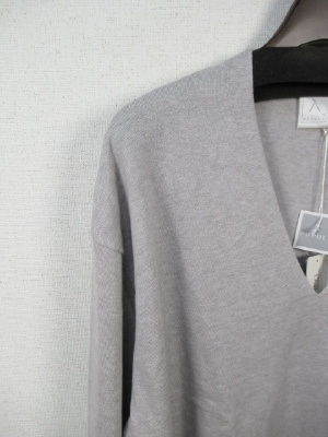 Vネック、ゆったりニット、袖も広くカフスがダブルになっていますが、カフスも広めになっています、ID:95724は形が同じでボーダー