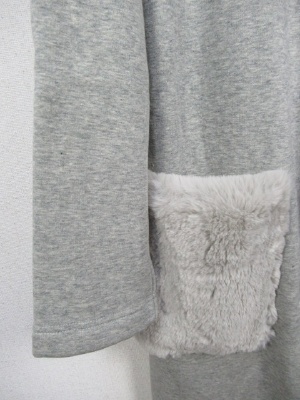 着流しコーディガン、ボンバーヒートの生地、フェイクファーのポケット付き(取り外しできません)
