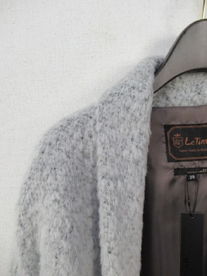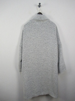 イタリア製生地、ビッグシルエットのコート、着流し風、フロントボタン無し、袖広め、横脇ポケット、裏地あり