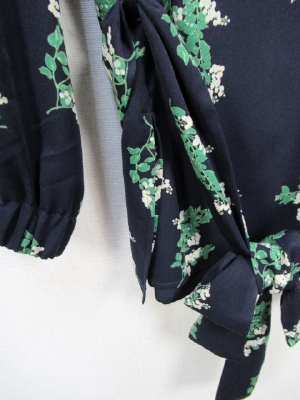 丈長のチュニック丈のブラウス、脇スリット入り、共ベルト付き、袖口部分ゴム