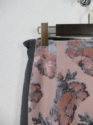 前後が生地違い 前は花柄(別珍)生地違いの裾(前の左右)スリット 後ろウエストゴム 横ファスナー