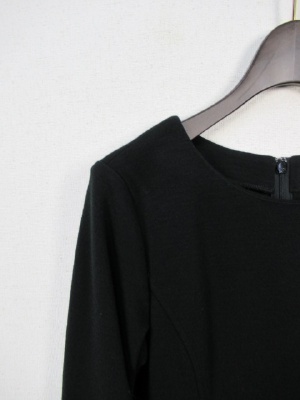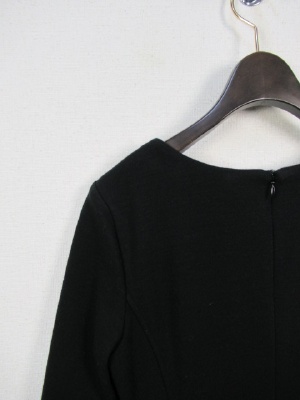 圧縮ウールのワンピース 裏地なし ウエスト切り替え 後ろファスナー 七分袖 袖口スリット 前にスリット 脇ファスナー 卒業式などのオケージョンに活用出来ます