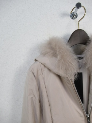 シンプルなキルティングデザインのダウンコート フードとポケットのファーは取り外しできます 毛皮…フォックス