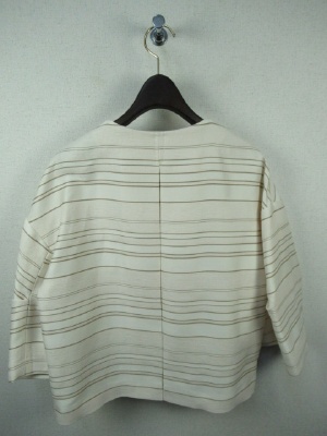 光沢のある織り生地 ビックシルエット フロントホック 袖はコクーン型七分袖 脇ポケット 後ろタック入り 裏地なし 生地はイタリー製
