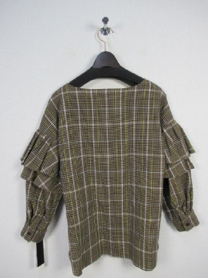 二の腕あたりに2段フリル 袖口カフス かぶりのブラウス