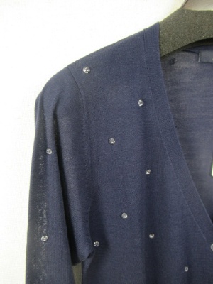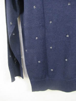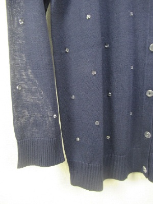 クリスタルなボタンを糸でトッピング Vネックのカーデタイプ 96933とセットになります 手洗いOK