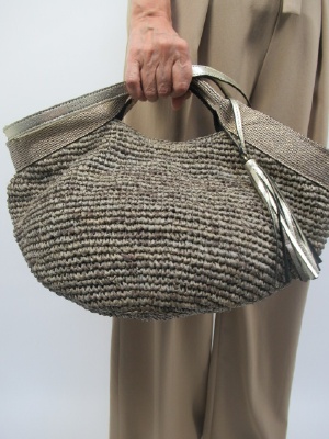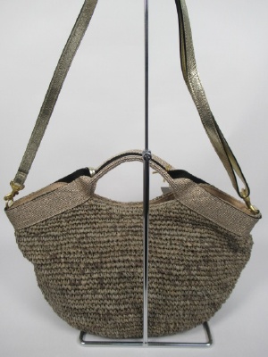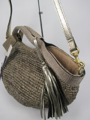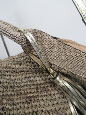 ラフィア×牛革(持ち手 タッセル、ゴールド系 )ショルダーベルト付き マグネット留め