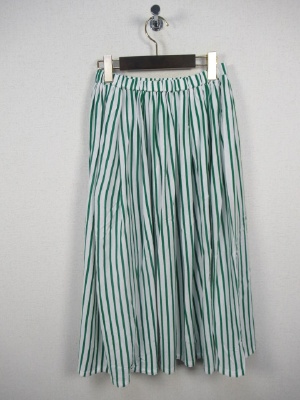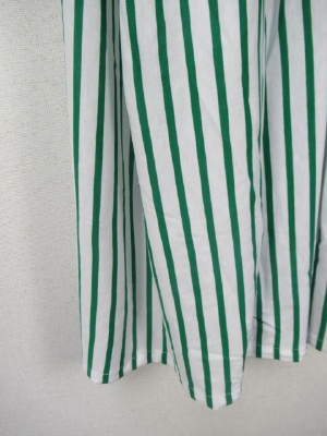ウエストゴム カットソー地 グリーンのストライプ 裏地付き トップス97066とセットアップできます 手洗いOK