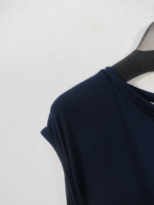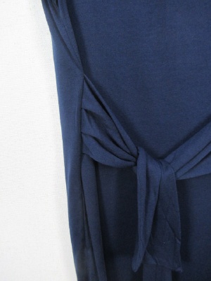 カットソー地のロングタイトワンピース 腰の脇に共のベルトが縫いこんであり それを前で軽く結ぶ 裏地なし 脇ポケット 手洗いOK