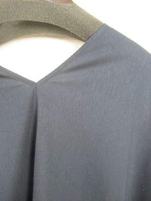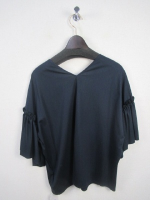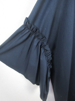 前後V開きのネック 中央にタック有り 袖はボリュームフリルで外付けになっててギャザーのところをあえてデザインにしてます