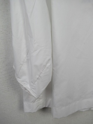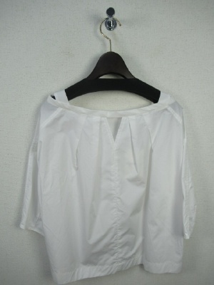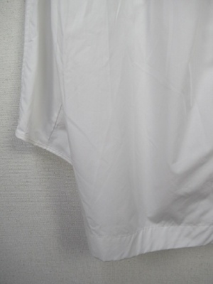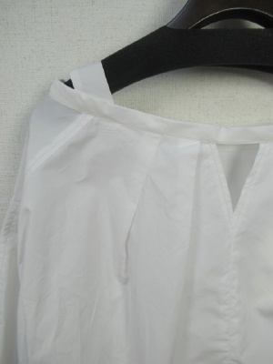 肩が広めに合う さなかに三角の開きがある 背中肩のあたりにタック 白は無地 ネイビーはギンガムチェック 手洗い可能