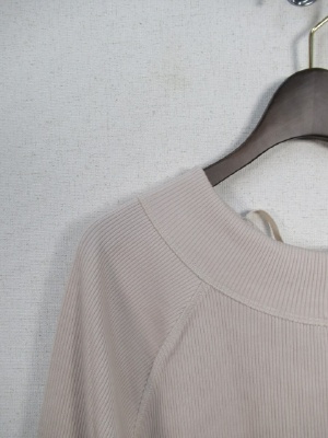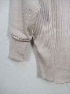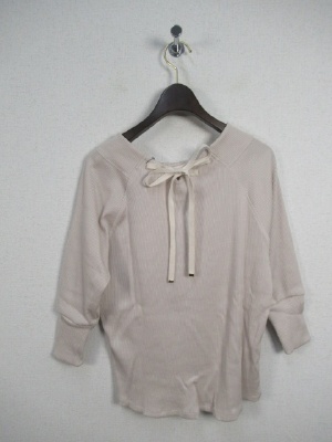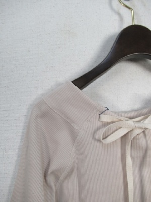 テレコ素材 ラグラン袖切り替え 七分袖 後ろ首のところレースアップ (別布) 裾はラウンドしてます 手洗い可能