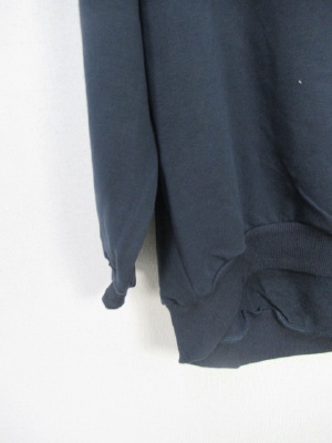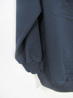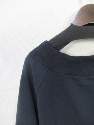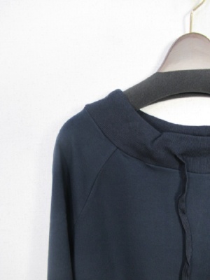 首ラインは紐で絞りができる 前上がりデザイン 裏毛のスウェット生地 全体に緩め ラグラン袖 裾はリブですぼんでる 手洗いOK
