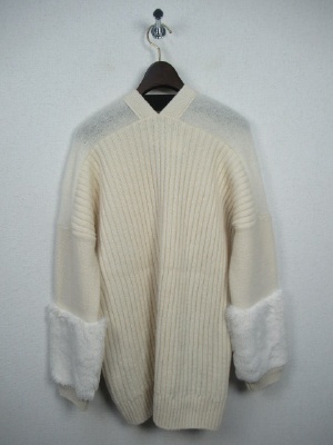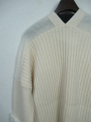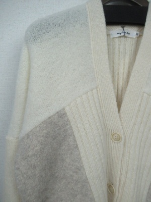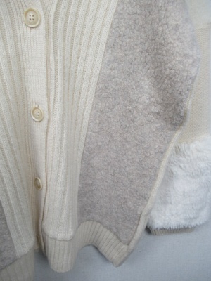 編み地がそれぞれ違う 素材も異素材を使用 Vネックのザックリカーデ