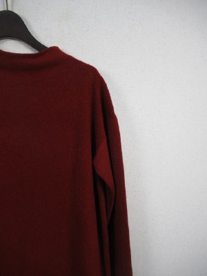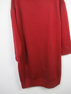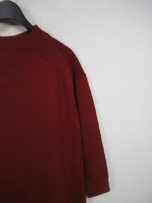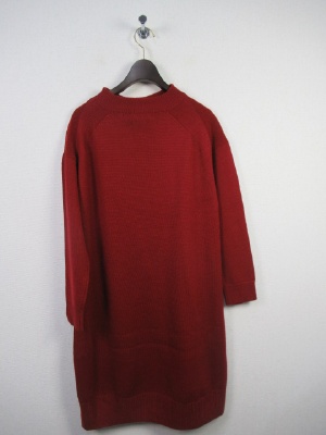 前身ごろと後ろ身ごろ・お袖部分で編み地が違う、ややボトルネック、ニットワンピース