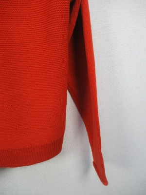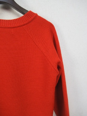 編みこみの地模様 丸首ニット 後ろ身ごろと前、袖と編み地違い