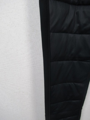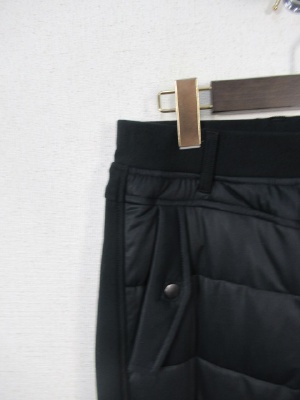 前部分ダウン80%、フェザー20%、ウェストゴム、裏起毛
