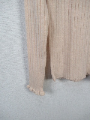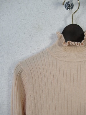 ハイネック ワイドリブ 襟と袖口フリル仕上げ 手洗い可能