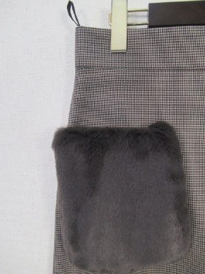 セミタイト 前にスリット有り 後ろファスナー 裏地あり 前ポケット その上に取り外しのできるフェイクファー