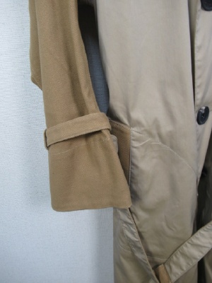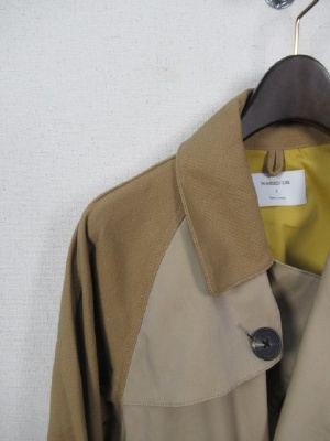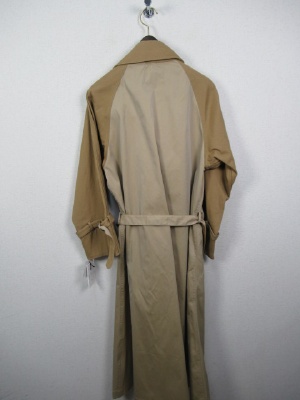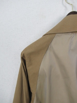 身ごろと袖部分は生地置き換え ラグラン袖、裏地なしですが裏の色が黄色で袖口も折り返すと黄色い部分が反転します。トレンチ風の春コート