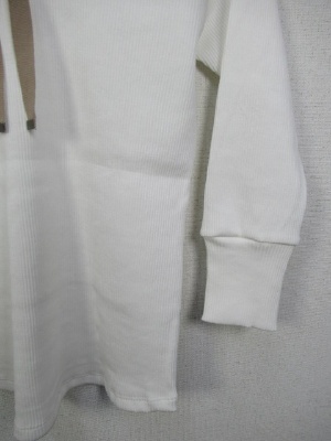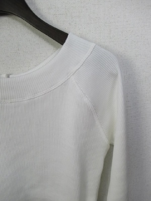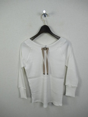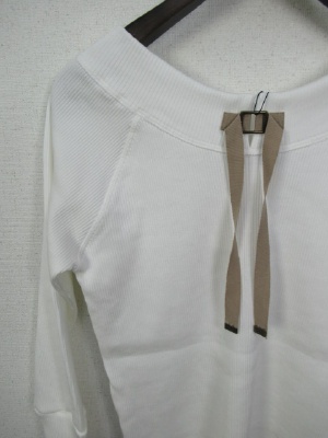 テレコのカットソー、首の後ろにグログランテープの飾り(白と赤はベージュ、紺は白)、七分袖、ラグラン、手洗い可能