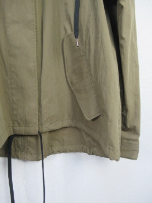 マウンテンパーカー、フードは取り外し可能、フード部分と裾部分紐調整可、前ファスナー(シルバー)