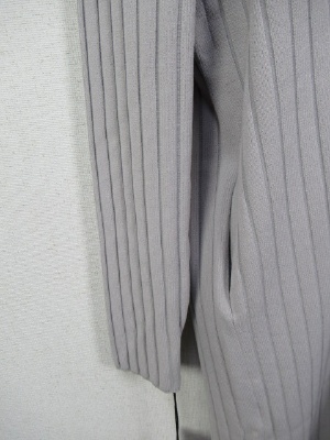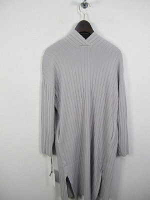 太めのリブニットカーディガン、着流しタイプ、横スリット、脇ポケット、手洗い可能