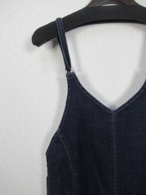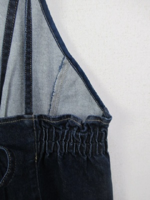 肩紐調整はウェストの後ろリボン部分とつながっているのでそこでできます、うぇすとの両横脇がゴムになっている、スカート部分はフレア