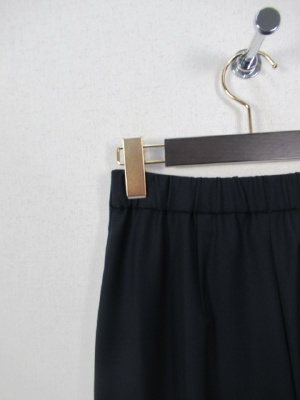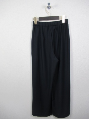 ハイウェストのワイドパンツ、前ファスナー、ウェスト後ろゴム、脇ポケット