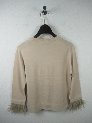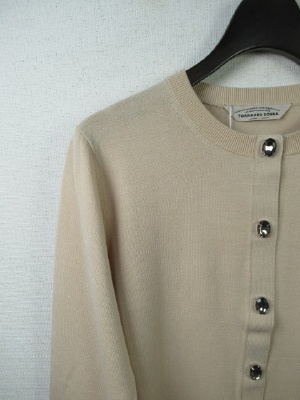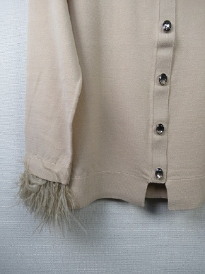袖には取り外し可能な(ホックで)羽がついたデザイン、前ボタンはグレー系のガラスボタン
