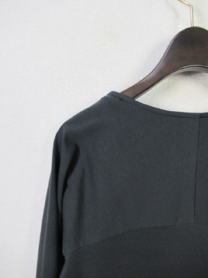 シンプルなスクエアネックのカットソー、長袖、ラグランスリーブ、後ろ身ごろに切り替えデザイン