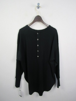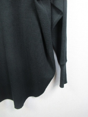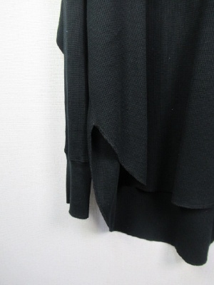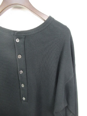 ワッフル生地のシンプルカットソー、ややビッグシルエット、後ろボタン、前後差有り、ドロップショルダー