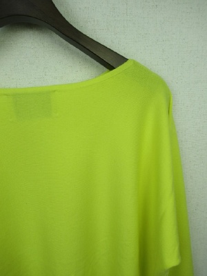 ゆるいVネックのシンプルニット、ドルマンスリーブ、手洗い可能、裾と袖口がリブ