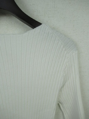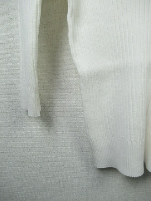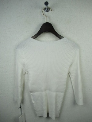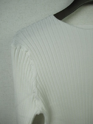 丸首のシンプルリブニット、七分袖、手洗い可能