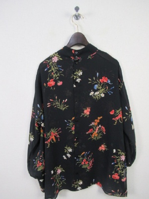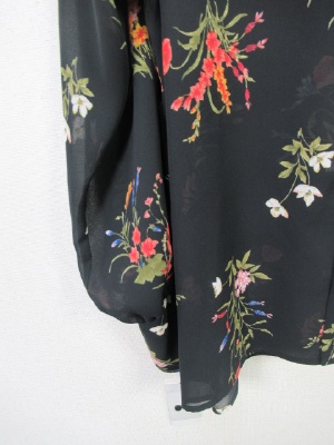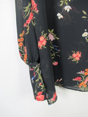 後ろボタンの花柄ブラウス、カフスは広め(ボタン3つあり)両横脇スリット