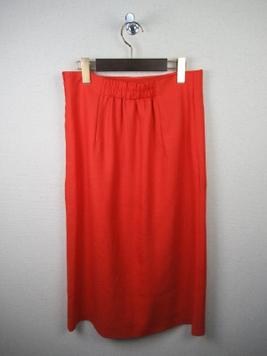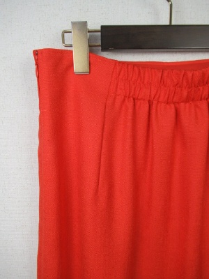 麻に似た素材 巻きスカート ウエストゴム 脇ファスナー 裏地付き