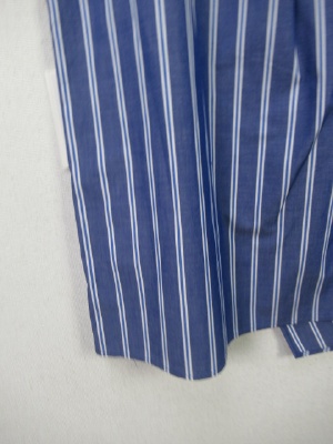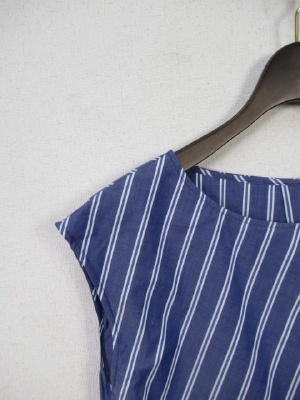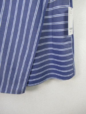 前身ごろがラップ風で2枚合わせになったデザイン、生地の配置違いでストライプとボーダー柄
