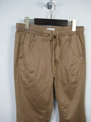 細身 ドロストパンツ 綿素材で涼しげ ウエストゴムと紐があるので多少の調整はできる 裏地なし ポケット有り 手洗いOK