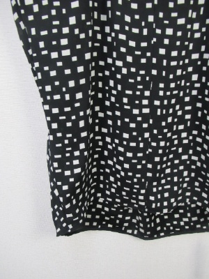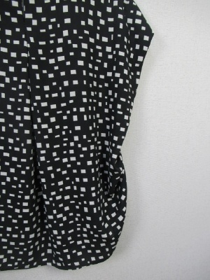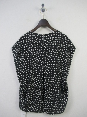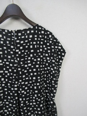 幾何学模様の柄 脇にタックが入ってふっくらしたデザイン フレンチスリーブ 背のところボタン 手洗いOK
