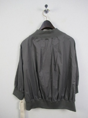 七分袖 襟はやや広く開いたデザイン 袖と襟 裾はリブニット ファスナーはシルバー ポケット有り 手洗い可能