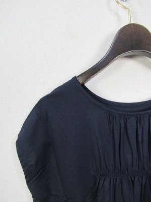 背中の中央でギャザー寄せデザイン ナイロン混で落ち感の生地でキレイ目 手洗い可能