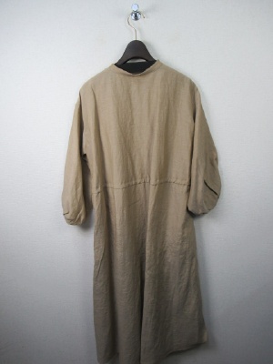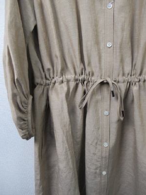 襟なしの前開きワンピース 袖はボリューム ウエストドロスト 羽織にもなるタイプ 手洗いOK