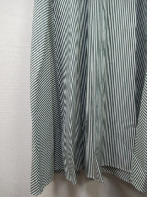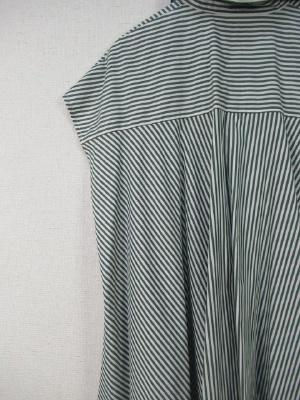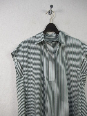 ビッグシルエットシャツワンピ、ドロップショルダーなので袖はあります、スキッパー襟(1つボタン)、前中央タック入り