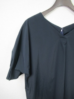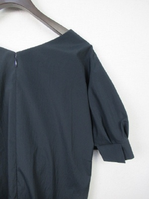 浅くV空きになった胸元 前はタック入り 後ろファスナー 袖はタックフリル ペチコート付き 手洗いOK
