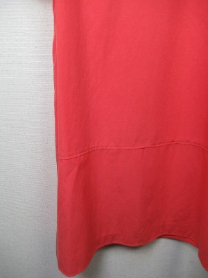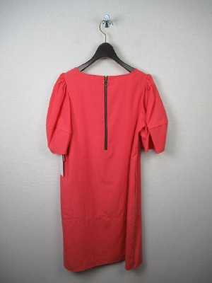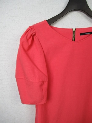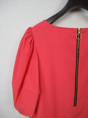 肩にギャザーのボリューム袖 胸元ダーツ 裾から27cm上あたり切り替え 後ろファスナー(ゴールド)裏地あり 手洗いOK