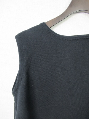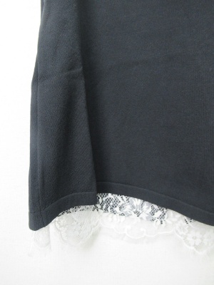 ノースリーブのニット、後ろは2枚合わせで白のレースが見えるデザイン、 (レースはポリエステル100)