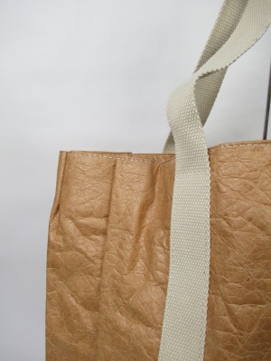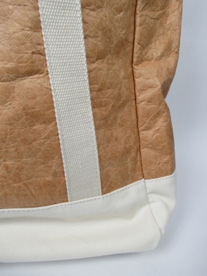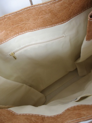 トートバッグ、両サイドはペットボトルなどを収納できるポケットあり、中にファスナーとポケット