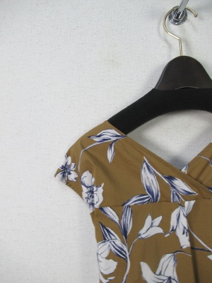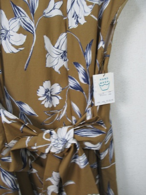 花柄の生地 脇からサッシュベルトが縫いこんであり前でリボン結び 脇にファスナーあり ペチコート付き 手洗い可能